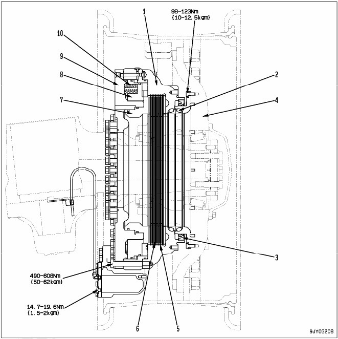 Inner gear Retainer Outer gear Plate Disc Damper Piston (for parking brake) Cylinder (for parking brake) Spring (for parking brake) Cylinder Piston Function Rear brake merupakan “oil cooled multiple disc type”, dan dapat digunakan sebagai parking brake dengan menggunakan kekuatan tension spring. Operation of brake Saat brake pedal, diinjak, pressure oli dari brake valve akan […]